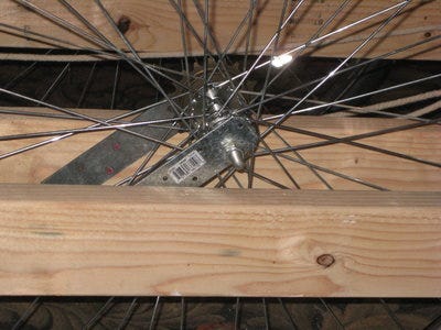 The frame is made from 2 and a bit 8 foot 2x4s and is 28.5 inches by 34 inches. Glued and screwed together. Asymetrical because the wheels have different widths. The wheels are the oddball 28 inch (635mm) 700B westwood roadster wheels that came with my flying pigeon. For dropouts I used galvanized steel "mending brackets" from home depot with the dropout slot cut with a drill press and hack saw.