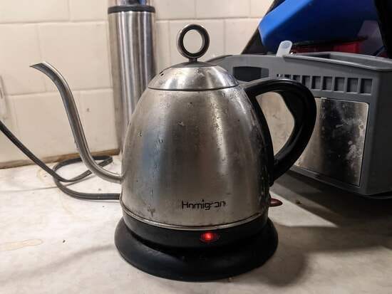 A Homigrand electric kettle, rated as drawing 1000W.