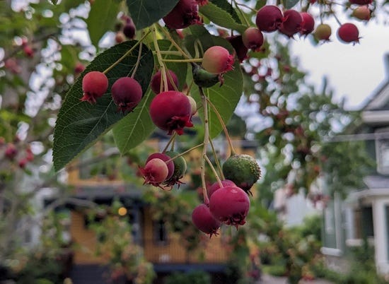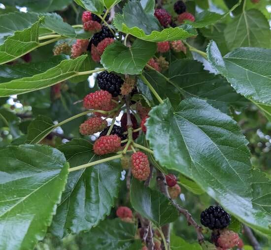 I like the mulberries best when they still have a hint of red, before they get too sweet.