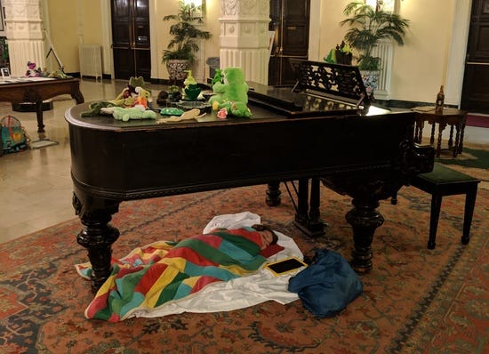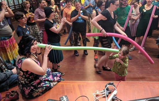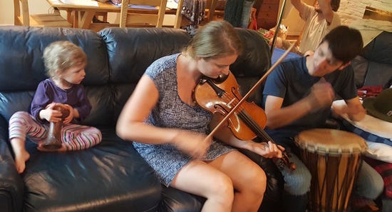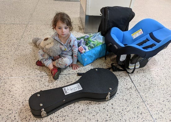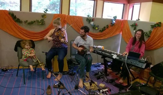 Many part-time musicians stop gigging after having kids. Kids take a lot of time and attention, traveling without them is hard for whoever is staying behind, and traveling with them involves a lot of logistics. But I do want to keep playing, and it turns out my kids really like coming with me to things.