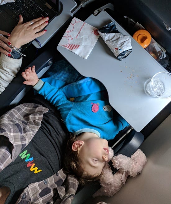 Driving and flying is generally pleasant: Lily doesn't get to watch movies or play games on her tablet except for long car trips and airplane rides, so this is special. She likes the unlimited tablet time so much that for her a plane trip is a solid positive, even for cross-country flights.