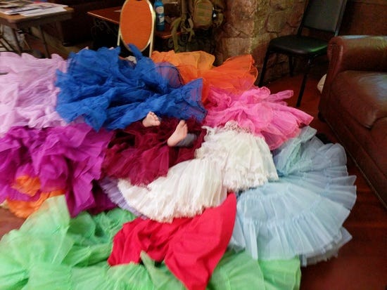 As Lily got older naps became just a quiet time, and we would look around the venue together for a nice place to rest. She often liked being under things: