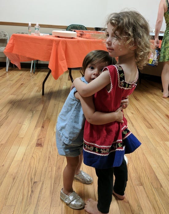I've now brought Lily solo to seven weekends and on one tour (at 2y5m, 3y6m, 3y7m, 3y11m, 4y1m, 4y2m, 4y11m, and 5y2m), and Anna to one weekend (at 1y11m). This is something I sort of fell into: initially I had thought it would be too much work and wasn't planning on bringing them until they were much older. But then Julia had a conference scheduled opposite a dance weekend I had committed to, so she brought Anna (6m) to the conference and I brought Lily (2y5m) to the weekend.