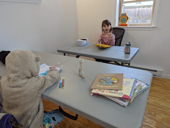 Upstairs apartment: Our family, which is Jeff, Julia, Lily (8), Anna (6), Nora (1). This is where the spare rooms are.