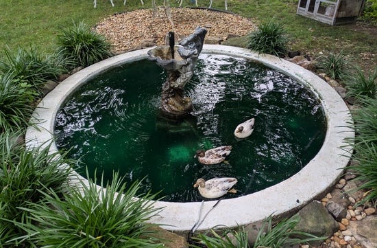 This week we were on vacation with my extended family: nine kids, eight parents, and ten grandparents/uncles/aunts. For the last few years we've been in a series of rental houses, and this time on arrival we found a fountain in the backyard: