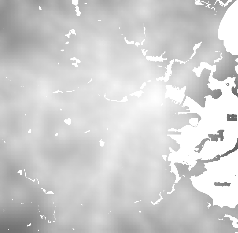 If you want to do further work with these, the small greyscale one can be thought of as an array of averages of the tillberg maps, scaled to be between 45min and 117min. The other two maps necessarily have distortions from the resizing or the quantizing.